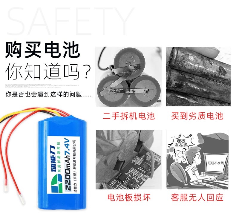 5、产品工艺:动力18650电芯搭配8.4V大电流保护板,2.54端子线。