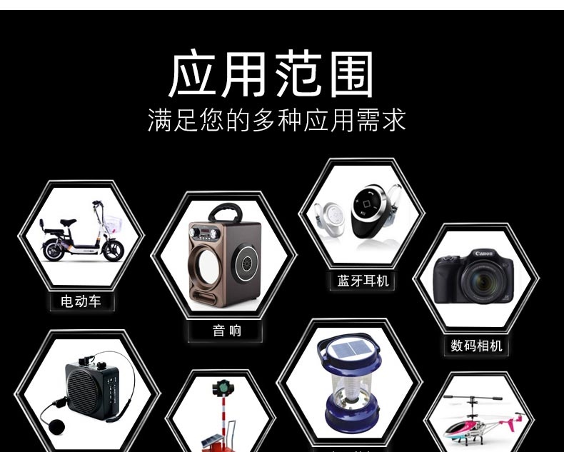 产品用途与优势:本司采用的18650是没有记忆性的大倍率电芯,所使用寿命更长:充电放电循环频次大于500次以上。存储容量更高,并且带有防爆孔,在使用安全性能上基本上是不会出现爆炸、燃烧的情况,而且非常的绿色安全,不会有毒副作用。在现实生活中有很多车载吸尘器、车载充气泵生产厂商的设备都会使用到我们的这种锂电池组,因为我们使用的是动力电芯,劲力十足,可使产品在清理车里面遗留的纸屑,废弃物,头发时更干净。让你的爱车变的更加整洁漂亮。传统车载吸尘器功率虽不太大,但相对汽车电瓶来说消耗也不小,还要启动车后才能使用。新一代的车载吸尘器配上我们的锂电池组后,更加方便收纳、便携。
